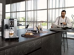 The machine features a clear touchscreen and optional app connectivity, allowing users to customize drinks easily. One-touch operation makes it accessible even for first-time users.